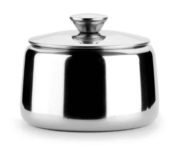 Açucareiro série Classic 0,23 litros, fabricado em aço inoxidável 18/10 de alta qualidade e excelente resistência à corrosão.