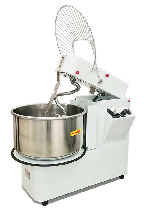Espiral, grelha, haste para partir a massa e cuba em aço inoxidável.