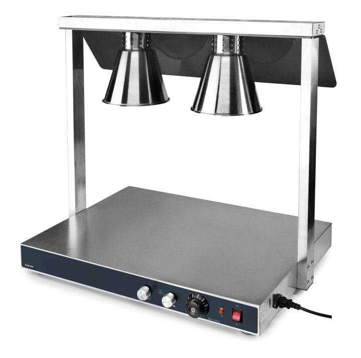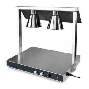 Placa de aquecimento elétrico de aço inoxidável mais 2 lâmpadas de halogéneo na parte superior para obter uma temperatura homogénea.