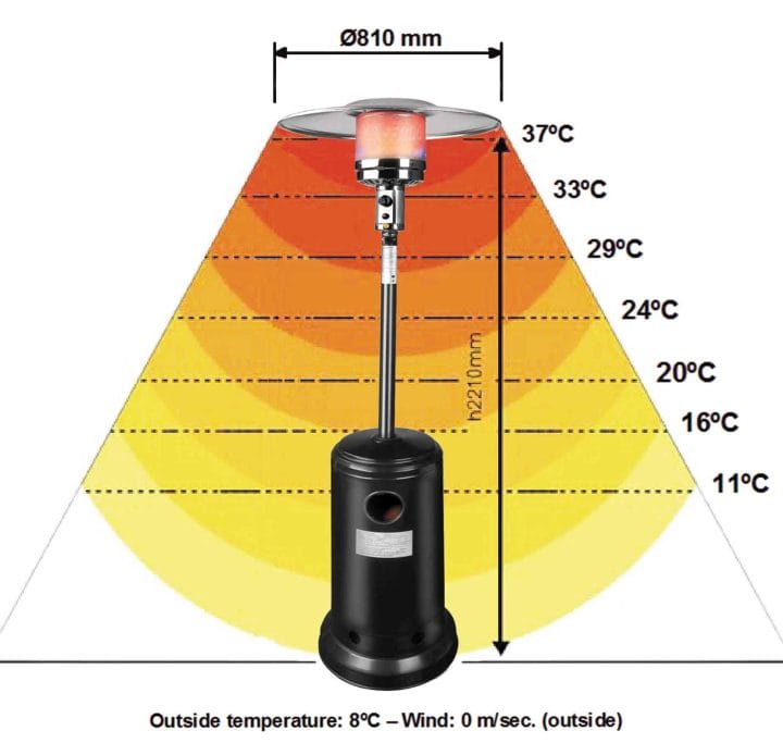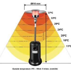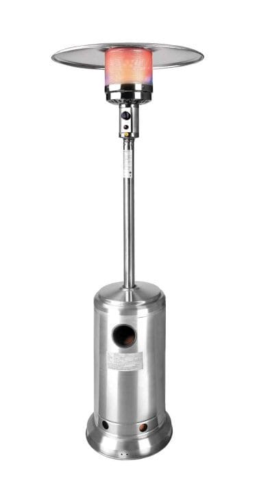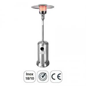 Aquecedor de pé a gás para esplanadas de bares ou restaurantes. Fabricado em aço inoxidável 18/10, com 224 cm de altura e refletor de Ø80 cm.