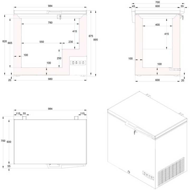 Dimensões (mm): 984 x 700 x 895