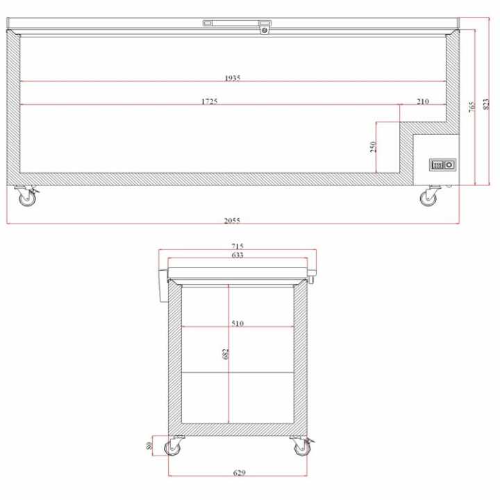 Dimensões interiores (mm): 1935 x 510 x 682