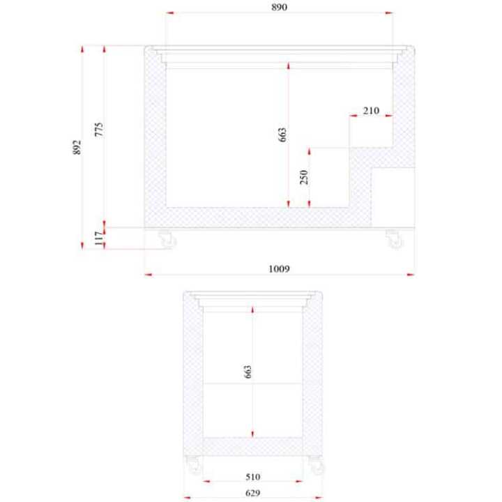 Dimensões (mm) : 1009 x 629 x 892