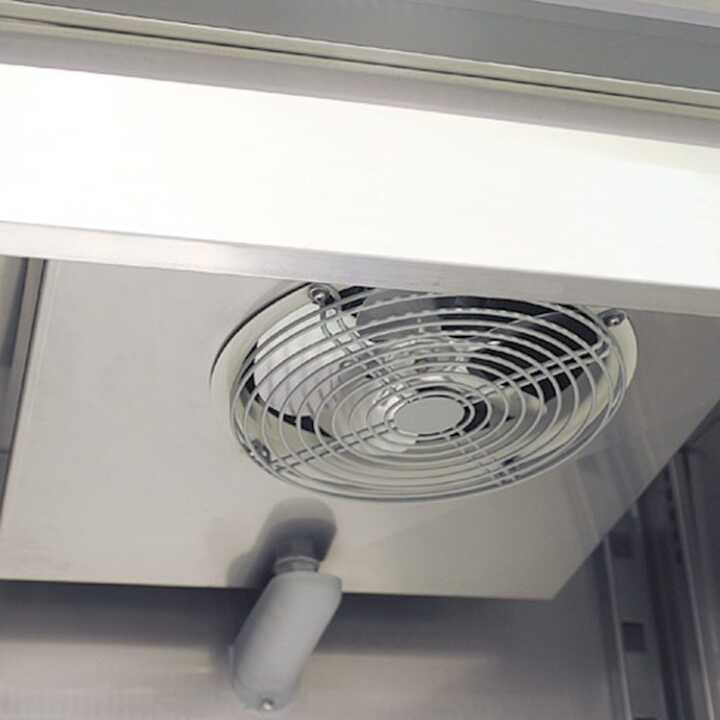Este compartimento é isolado do resto do armário e tem um evaporador estático que funciona com uma unidade de condensação independente e controlo de temperatura.