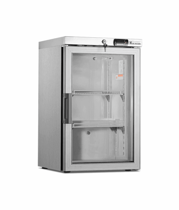 Mini armário frigorífico de conservação de congelados estático e com porta de vidro.