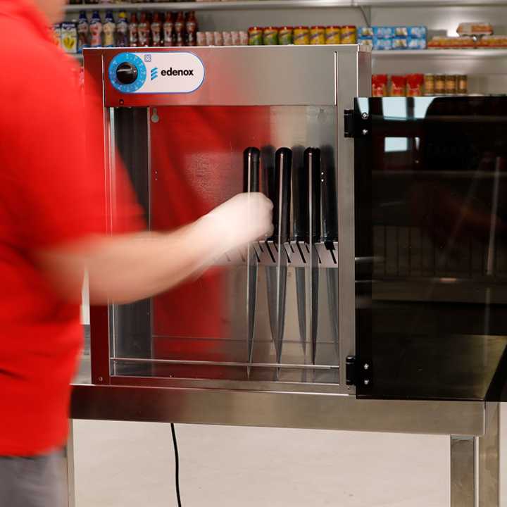 Cesto de arame de aço inox para guardar facas, removível para facilitar a limpeza no modelo EC-14. Temporização mecânica de até 90 minutos no modelo EC-14.