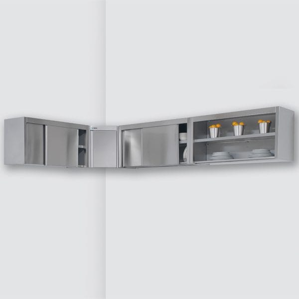 Armários projetados para facilitar a organização da cozinha industrial e aproveitar ao máximo o espaço disponível.