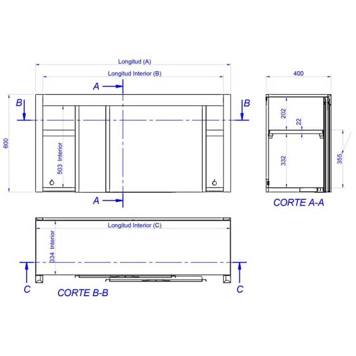 Dimensões (mm): 1600 x 400 x 600