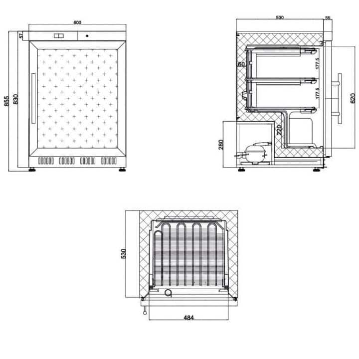 Dispõem de 7 prateleiras fixas e a refrigeração é estática através de prateleiras evaporadoras