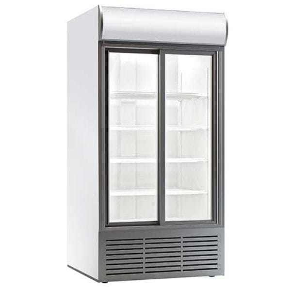 Com termómetro digital, interior e display com iluminação, portas de vidro duplo deslizantes, 4 pés ajustáveis em altura, gás de refrigeração R-290, termóstato digital e refrigeração ventilada.