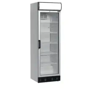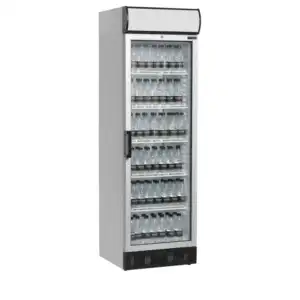 A gama FSC de refrigeradores de garrafas de 1 porta oferece uma excelente qualidade de construção a um preço competitivo. O armário é branco e possui uma porta de vidro com uma moldura de alumínio cinzento. É ideal para personalizar com a sua marca e, graças à cobertura iluminada na parte superior, atrairá certamente a atenção dos clientes. Obtém uma excelente apresentação dos produtos, combinada com um potente sistema de refrigeração assistido por ventoinha, enquanto as prateleiras ajustáveis acrescentam flexibilidade. Muitos modelos também estão disponíveis sem cobertura (gama FS).
