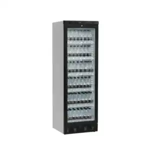 A gama SCU de refrigeradores de garrafas oferece um excelente espaço de exposição e armazenamento. Está disponível numa gama de tamanhos com ou sem cobertura. É um armário branco com uma porta de vidro preto reversível com moldura de alumínio, prateleiras ajustáveis e iluminação interior LED para uma apresentação óptima do produto. Um sistema de arrefecimento assistido por ventoinha assegura um arrefecimento uniforme em todo o armário.