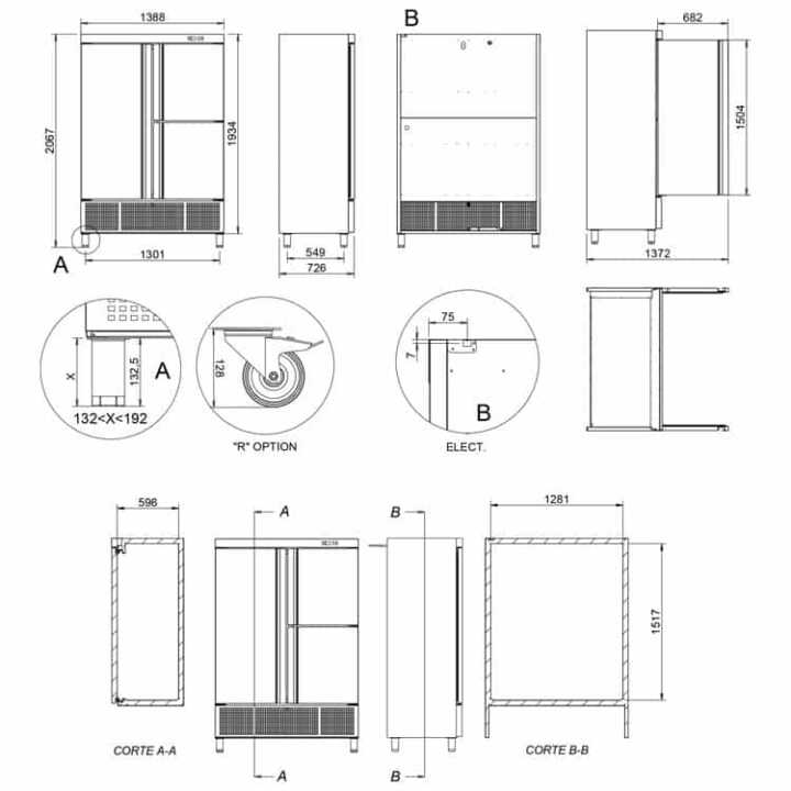 Dimensões (mm): 1388 x 726 x 2067