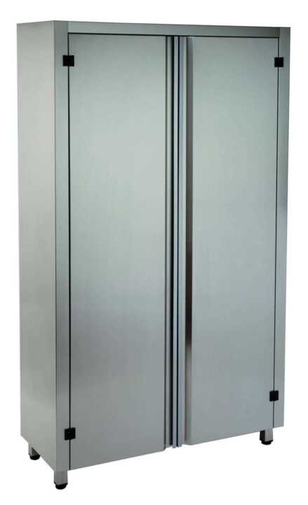 Armário vertical em inox, com 3 prateleiras e 2 portas.