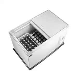 A gama KBAK de refrigeradores de garrafas horizontais oferece uma solução de refrigeração incrivelmente espaçosa para bares, locais, festivais e eventos. O compartimento do compressor está localizado por baixo da zona de refrigeração e não integrado na parte lateral da unidade, o que significa que pode colocar caixas de cerveja ou refrigerantes diretamente por baixo da unidade e empilhá-las. As tampas deslizantes permitem um acesso fácil ao conteúdo e podem ser removidas para reabastecimento.