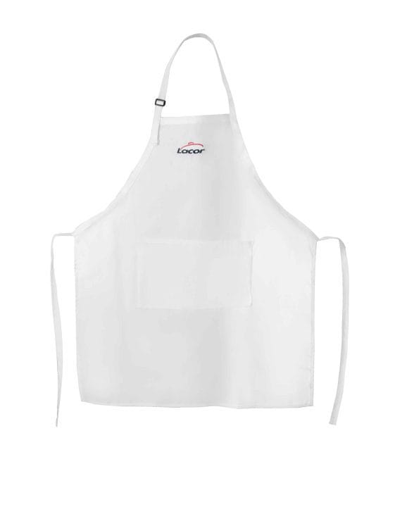 Avental de cozinha com bolso central fabricado em algodão de alta qualidade.