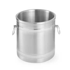 O balde de gelo em aço inoxidável com isolamento térmico (paredes duplas) é um acessório útil para armazenar cubos de gelo no balcão do bar ou na mesa do consumidor.