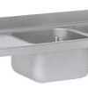 Encimeras com profundidade de 600 mm com pia e borda traseira de 100 mm de altura totalmente soldada.