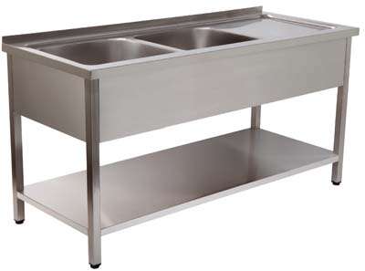 BANCADA DE LAVAGEM 2 CUBAS 1400x600x850 INOX