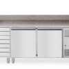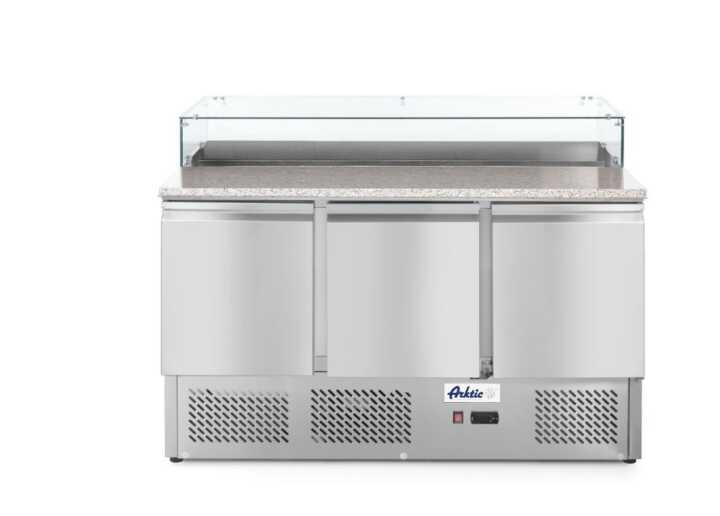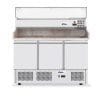 Com cobertura em aço inoxidável à volta do espaço GN, onde cabem 8 recipientes GN 1/6 (altura máx. 150 mm).