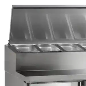 A gama SS de mesas de preparação de sanduíches frias é feita de aço inoxidável SS304 e é uma excelente escolha para cozinhas profissionais. Tudo o que precisa está na ponta dos seus dedos. Os recessos de refrigeração são adequados para bandejas GN e os armários permitem um acesso fácil para reabastecimento. Estas mesas de frio estão disponíveis em vários tamanhos com 2 ou 3 portas.