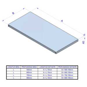 Bancada para instalar nas mesas de trabalho normalizadas como estante intermediário entre a superfície de trabalho e o estante inferior.