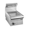 O tanque possui paredes e fundo em aço inoxidável AISI 304 18/10, com cantos arredondados e frente moldada para facilitar as operações de descarga e limpeza