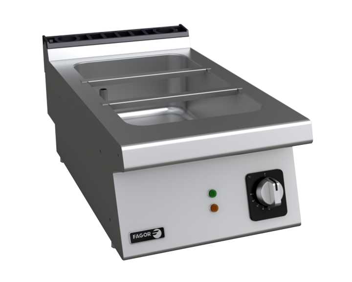 – Cubas que admitem diferentes disposições de recipientes Gastronorm de distintos tamanhos, de 150 mm de altura, e com dimensões GN-1/1, com 17 litros de capacidade.