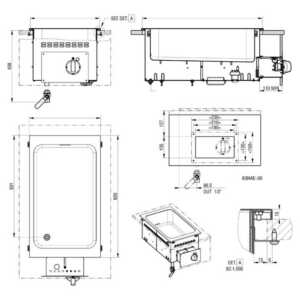 Tanque em aço inoxidável de repuxo profundo com capacidade GN 1/1 de 150 mm de profundidade ou subdivisões.