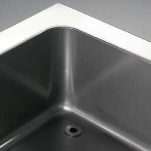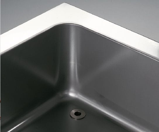 Cuba embutida com cantos arredondados soldada na parte superior, formando uma peça compacta.