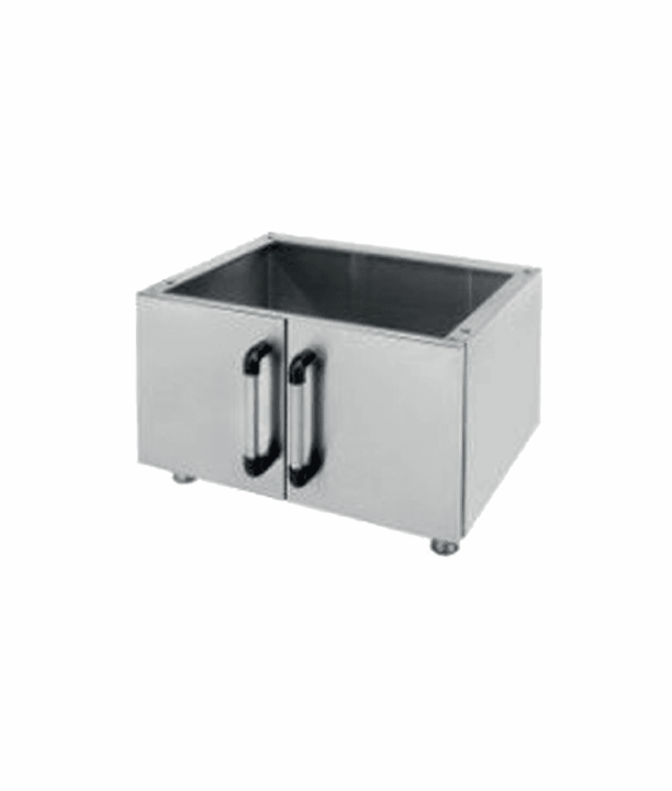 Base neutra dupla L630 para suporte de equipamentos, com pés niveladores, porta de abrir e puxador.