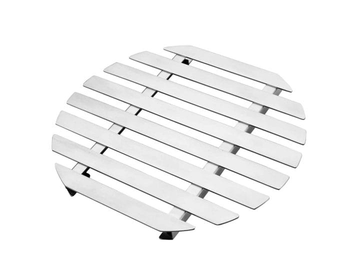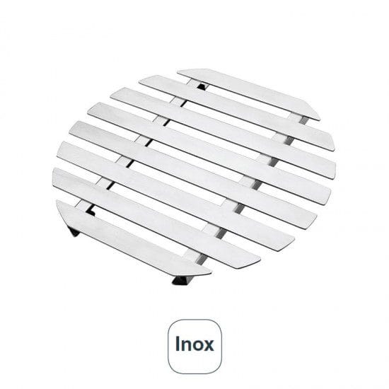 Base para tachos redondo de 20x18x2 cm fabricado em aço inoxidável, 18% de Cromo de alta qualidade e resistência à corrosão.