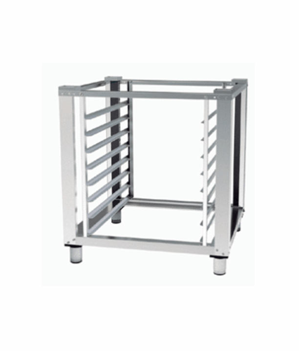Base suporte para fornos com estrutura em aço inox AISI 304 e 10 pares de guias para tabuleiros.