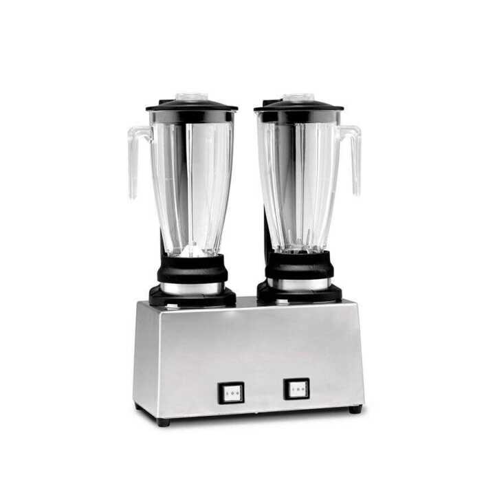 Liquidificador com copos em policarbonato transparente, corpo de alumínio.