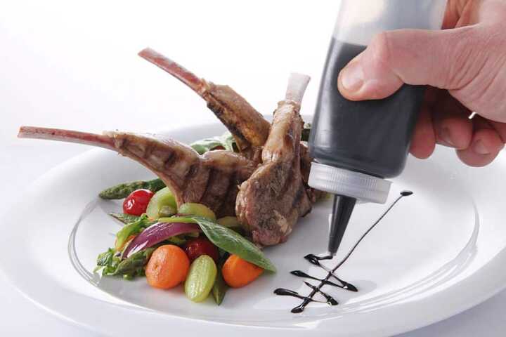A tampa garante que a frescura do molho e a higiene são mantidas.