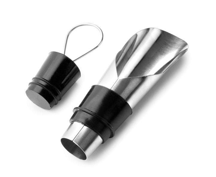 Set com um bico de aço inoxidável para servir vinhos de forma limpa, mais um bujão universal cónico.