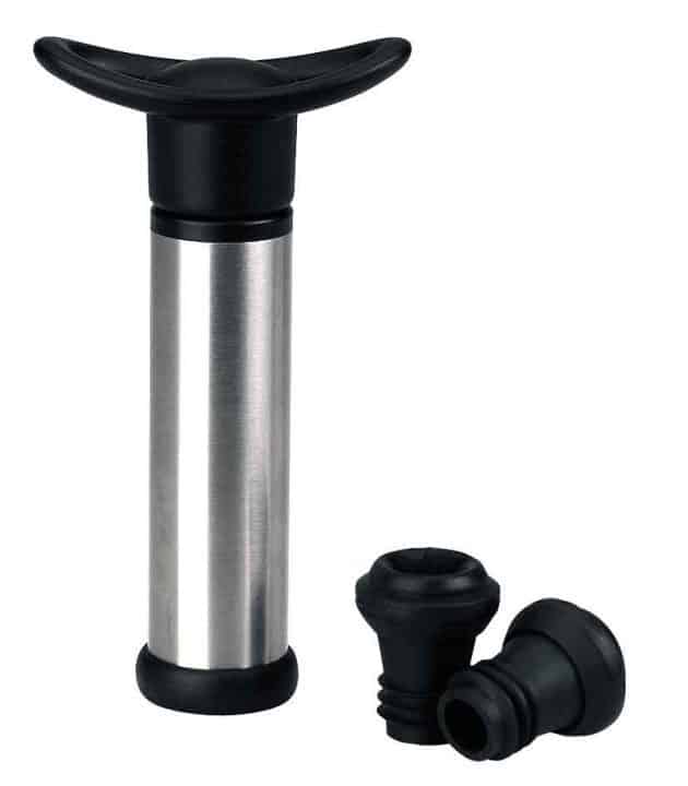 Bomba de vácuo do aço inoxidável 18/10 de grande qualidade, mais 2 tampas para fechar hermeticamente e preservar as garrafas abertas de vinhos ou espumantes.