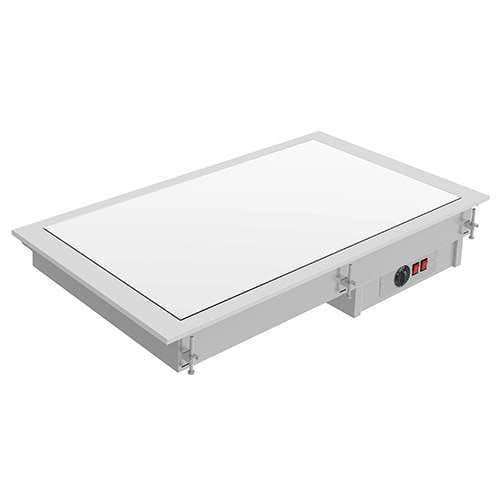 Placa vitrocerâmica lisa para servir, apresentar e manter os alimentos quentes.