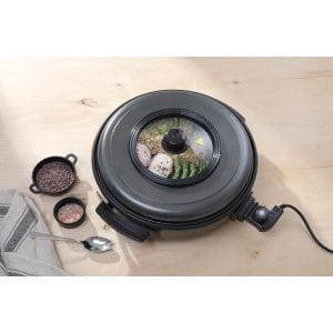 Inclui tampa com vidro transparente e duas pegas com isolamento térmico.