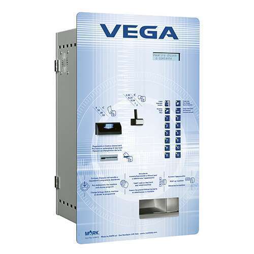 Caixa central de pagamento de encastrar, com possibilidade de controlar até 20 máquinas. Inclui leitor de cartões e dispensador de troco em notas.