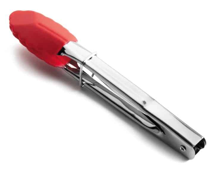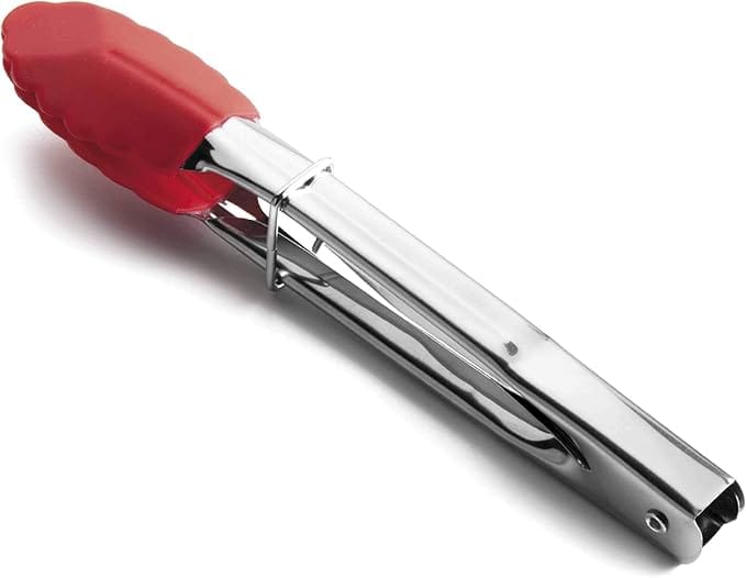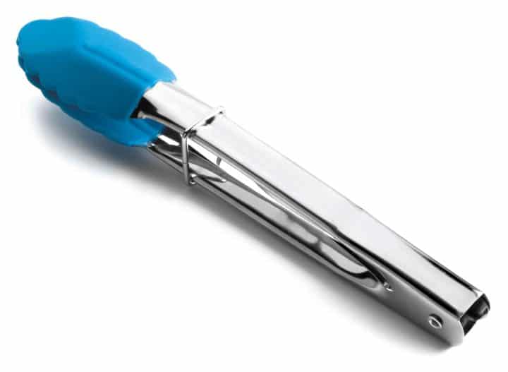 Caixa display de 25 pinças de 18 cm de comprimento em silicone de diferentes cores e cabo de aço inoxidável. Ideal para cozinhar ou para bolos.