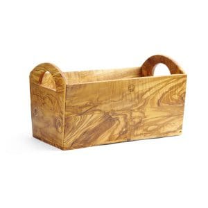 A caixa de madeira de oliveira é ideal para servir e apresentar comida. Os pedaços de madeira são escolhidos à mão. Cada caixa tem padrões e tonalidades únicos.
