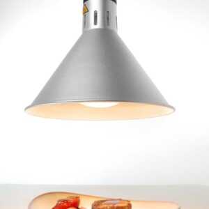 Inclui lâmpada resistente a quebras e adequada para manter os alimentos quentes.