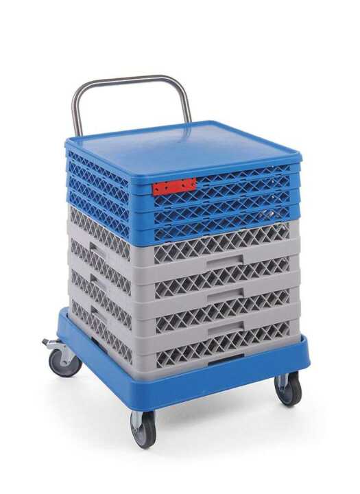 4 rodas, 2 delas giratórias com travões e 2 fixas.