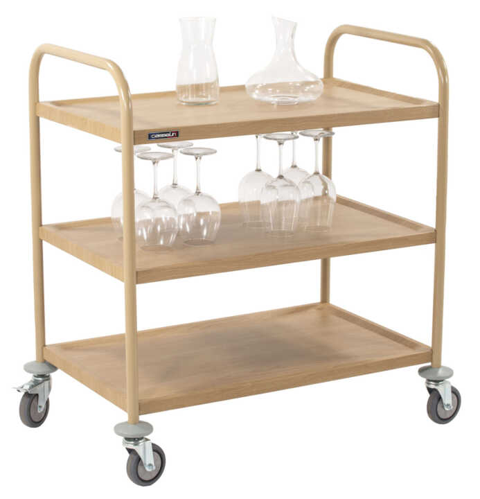 Carrinho de serviço em imitação de madeira com 3 prateleiras