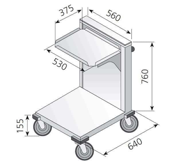 Equipado com rodízios giratórios à prova de som de 4 Ø 125 mm, dois dos quais com travões.