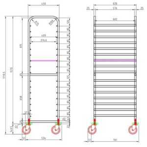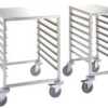 Os modelos para recipientes Gastronorm estão equipados com 17 pares de guias soldados à estrutura de tubo quadrado, com uma distância de 75 mm entre elas.