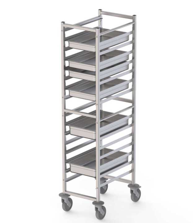 Carro De Tabuleiros Em Aço Inoxidável Para 16 Tabuleiros Gn1/1 460X640X1700H mm Carro De Tabuleiros Em Aço Ino...
