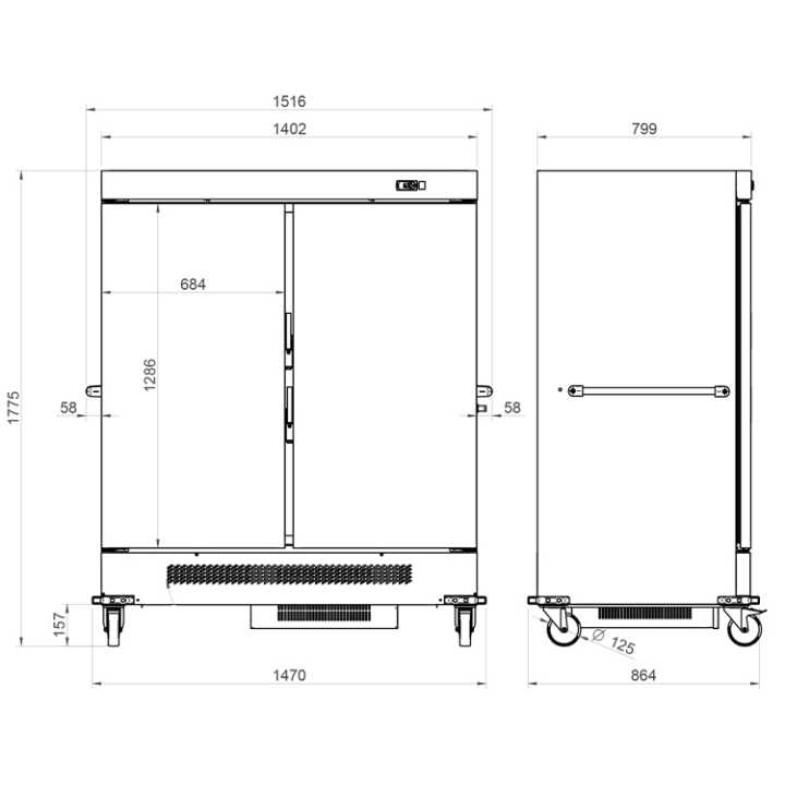Controlo da temperatura e ciclo de descongelação por meio de controlo electrónico com leitura digital.