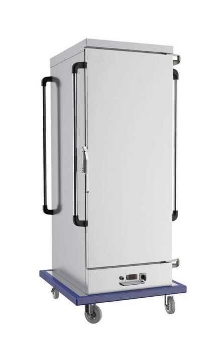 Carro com controle digital. Uma porta. Temperatura ajustável de 50ºC a 90ºC. Pegas ergonômicas. Porta com fecho.